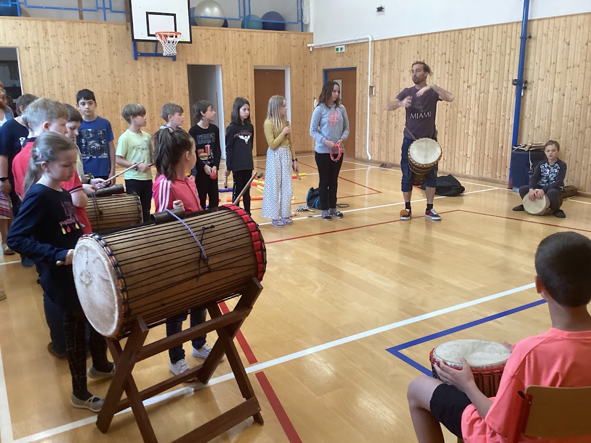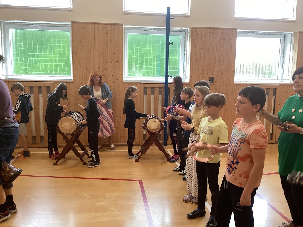 S koncem školního roku je po závěrečných prověrkách více času na zábavu, a proto jsme přivítali bubeníka Jirku, který nás zavedl do tajů bubnování.