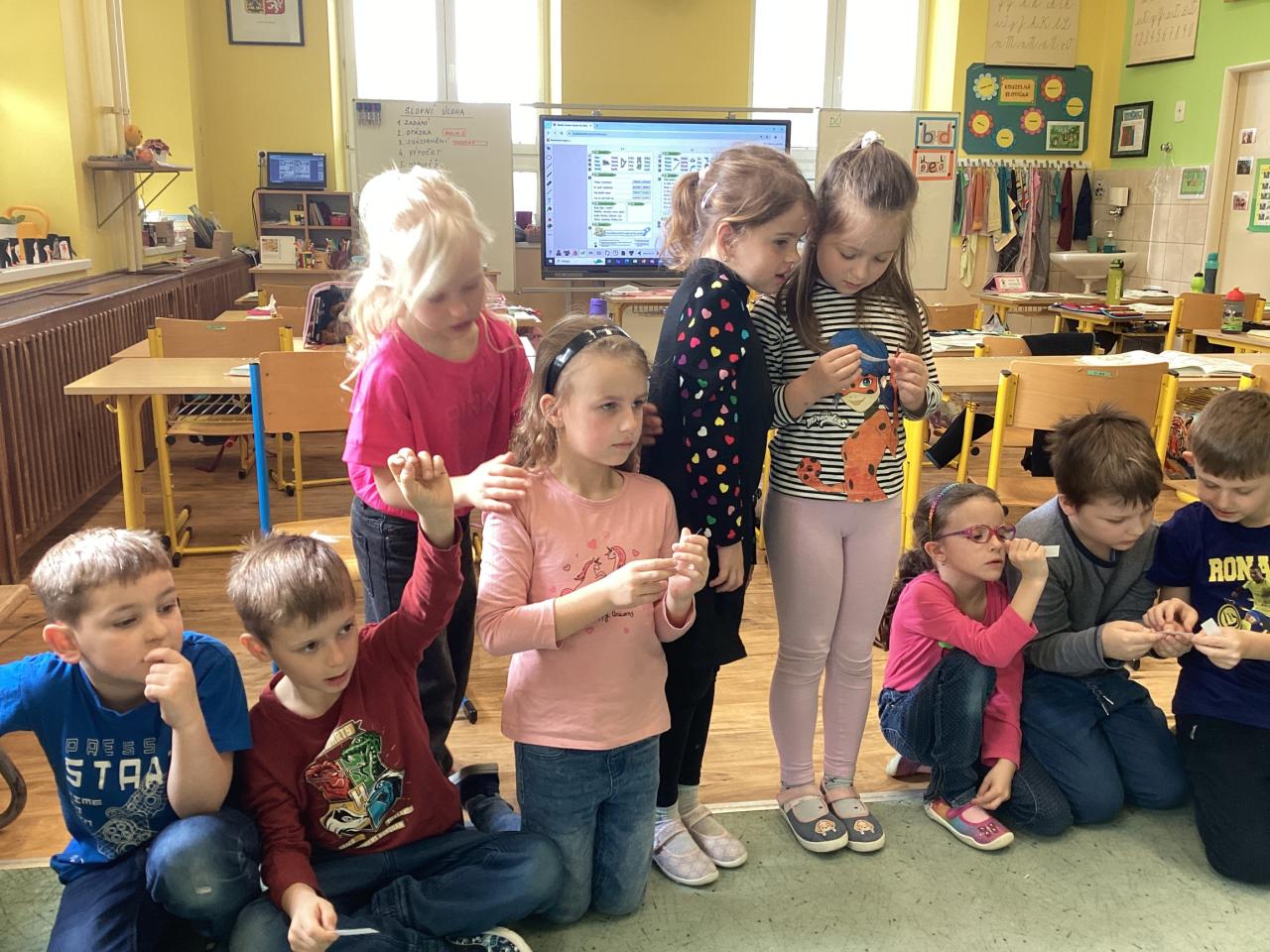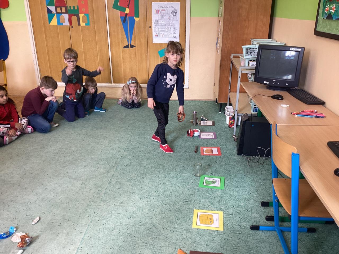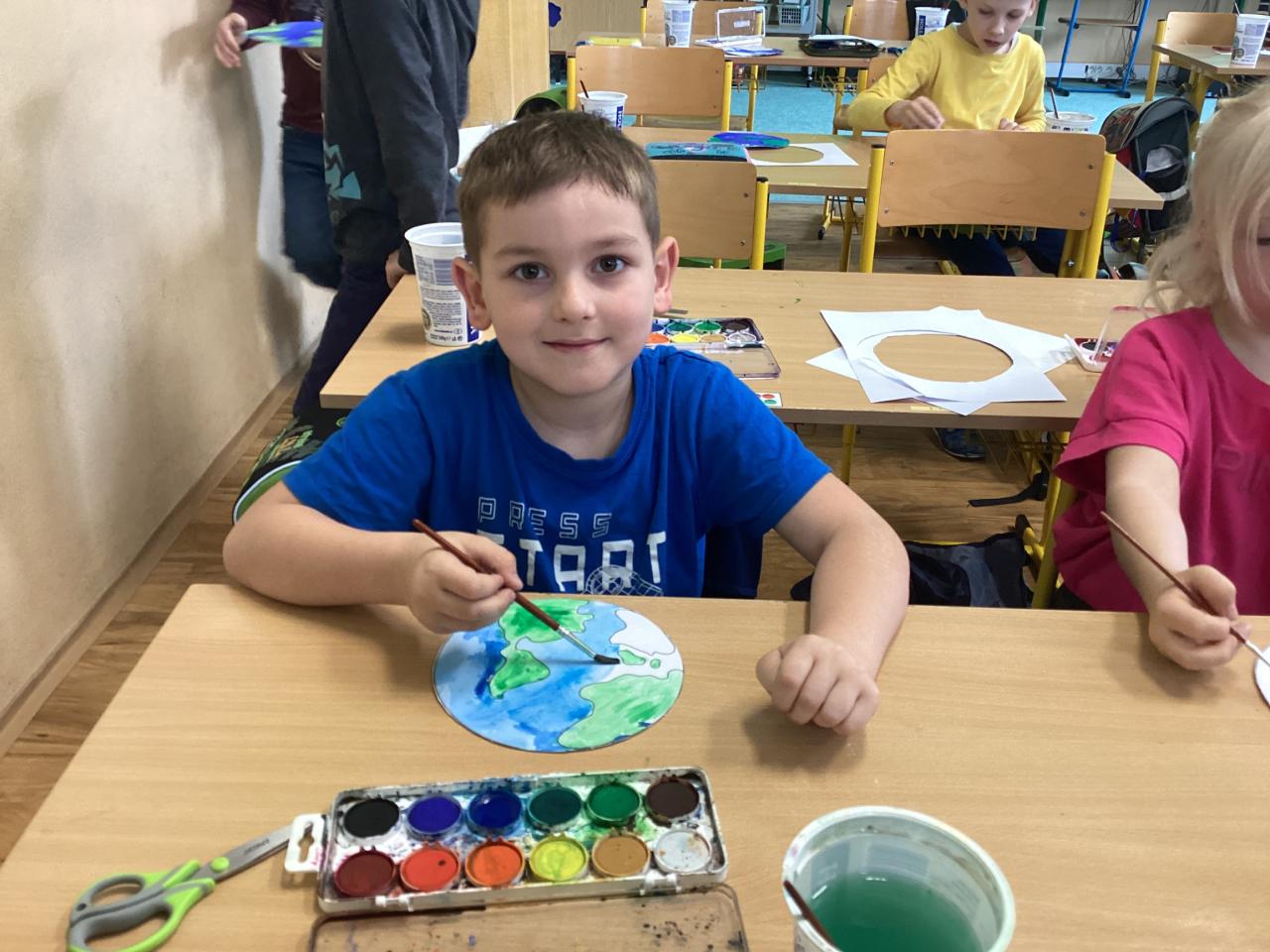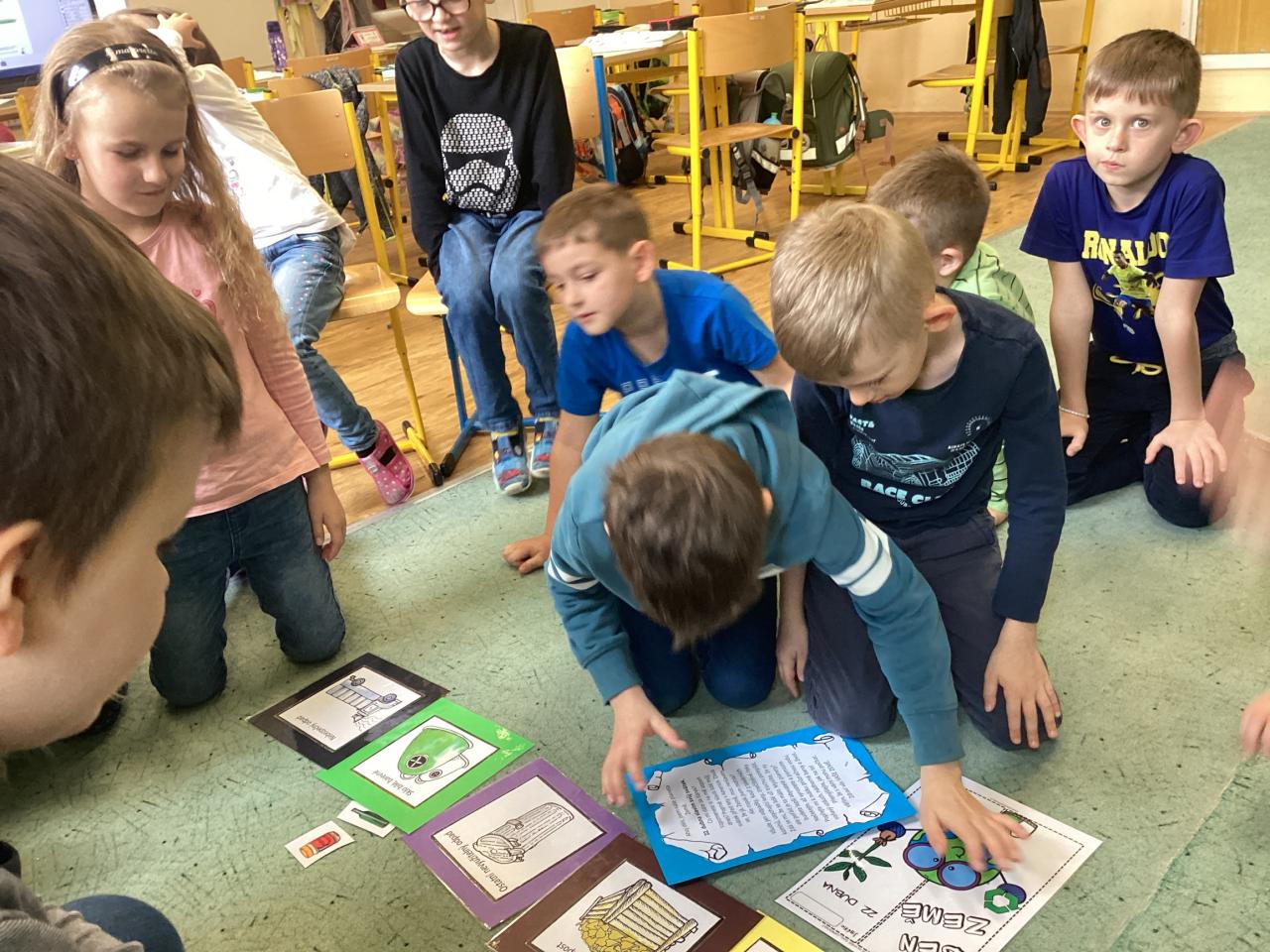 Abychom se také trošku protáhli, vyšli jsme na hřiště, kde jsme běhali k jednotlivým stanovištím a luštili připravené tematické otázky. Jak jsme zjistili, nebyly pro nás úplně snadné, máme ještě hodně co dohánět. Tajenku jsme nakonec společně dořešili ve třídě a na závěr jsme si namalovali krásné planety  Země ve výtvarné výchově.