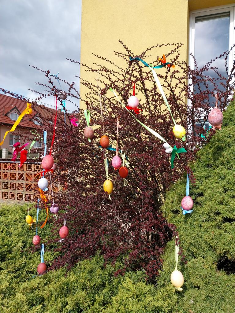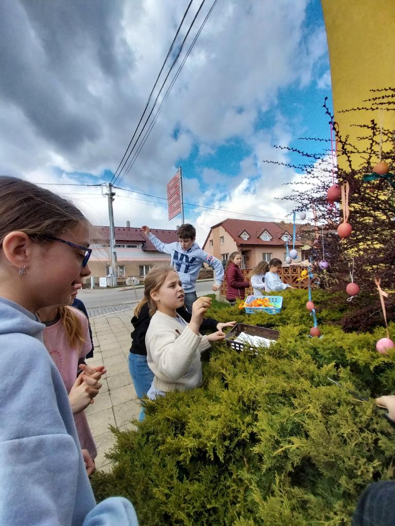 Poprvé jsme také velikonoční náladu přenesli i před naši školu. Moc se nám to líbilo a měli jsme z výsledku velkou radost. Líbilo se i vám?