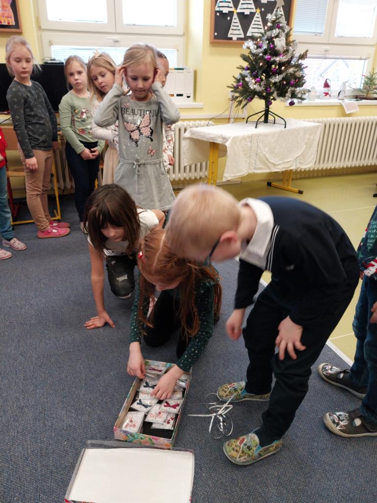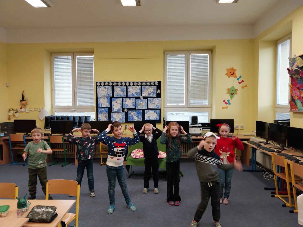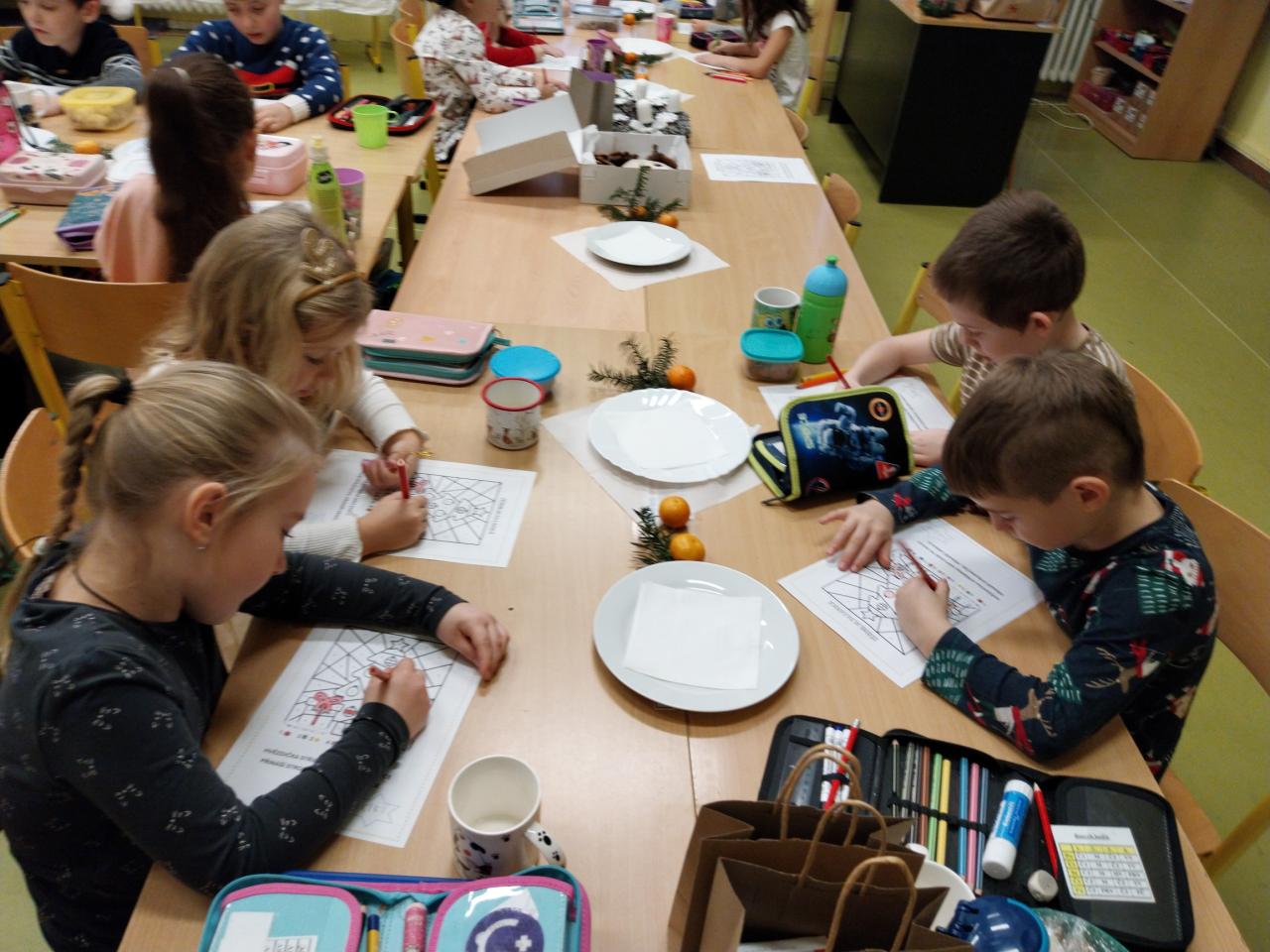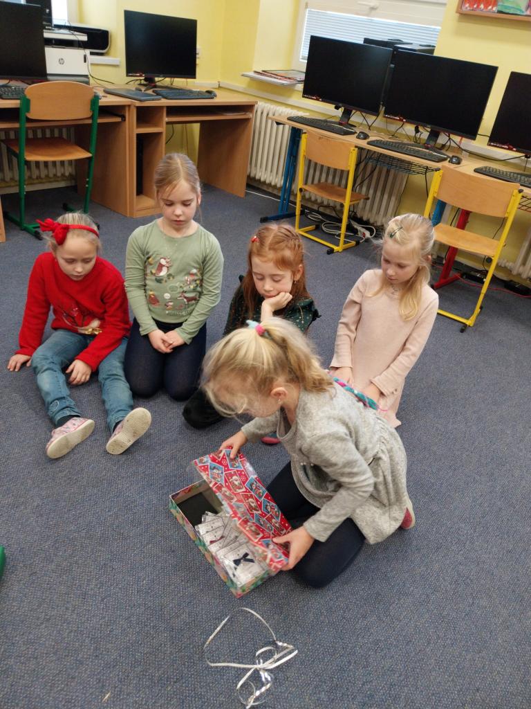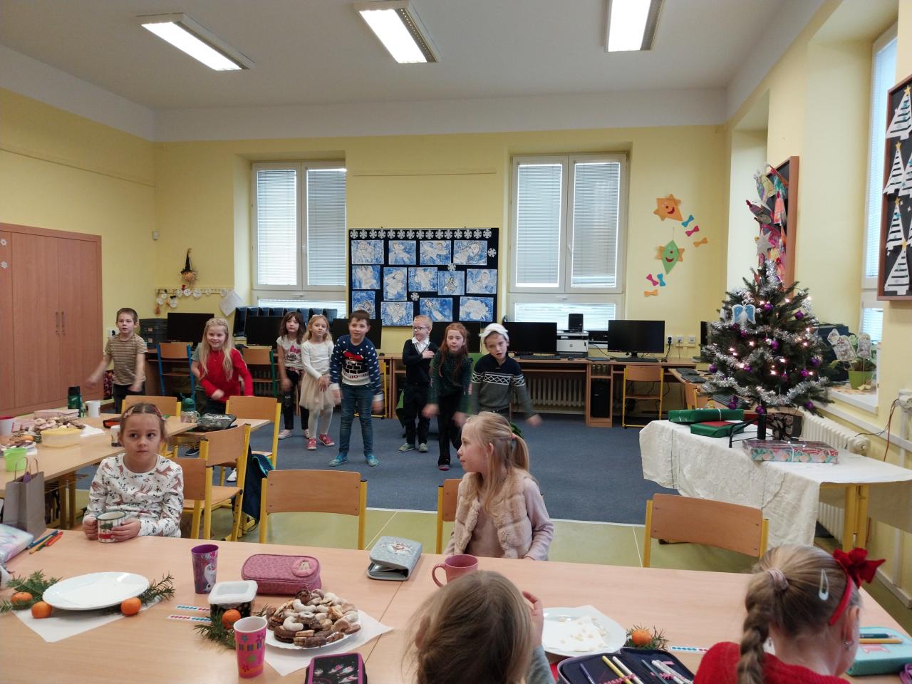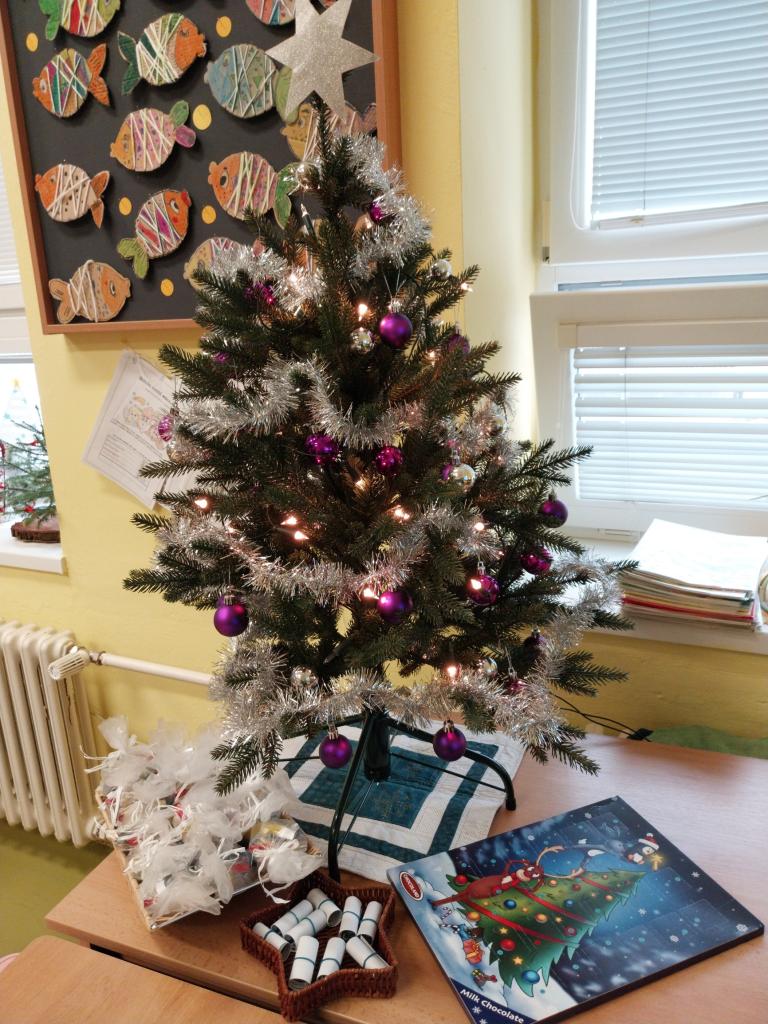 Když už Vánoce byly za dveřmi a nastal poslední den školy, uspořádali jsme si ve třídě takové malé vánoční posezení. Posezení s cukrovím, čajíčkem i drobnými dárečky. Ale učeníčko jsme nevynechali – četli jsme si, psali i počítali a něco jsme si nechali také na doma. Aby nám to čekání na Ježíška rychle uteklo. No a potom už jsme se s přáním, radostí a nedočkavostí rozeběhli do svých domovů.