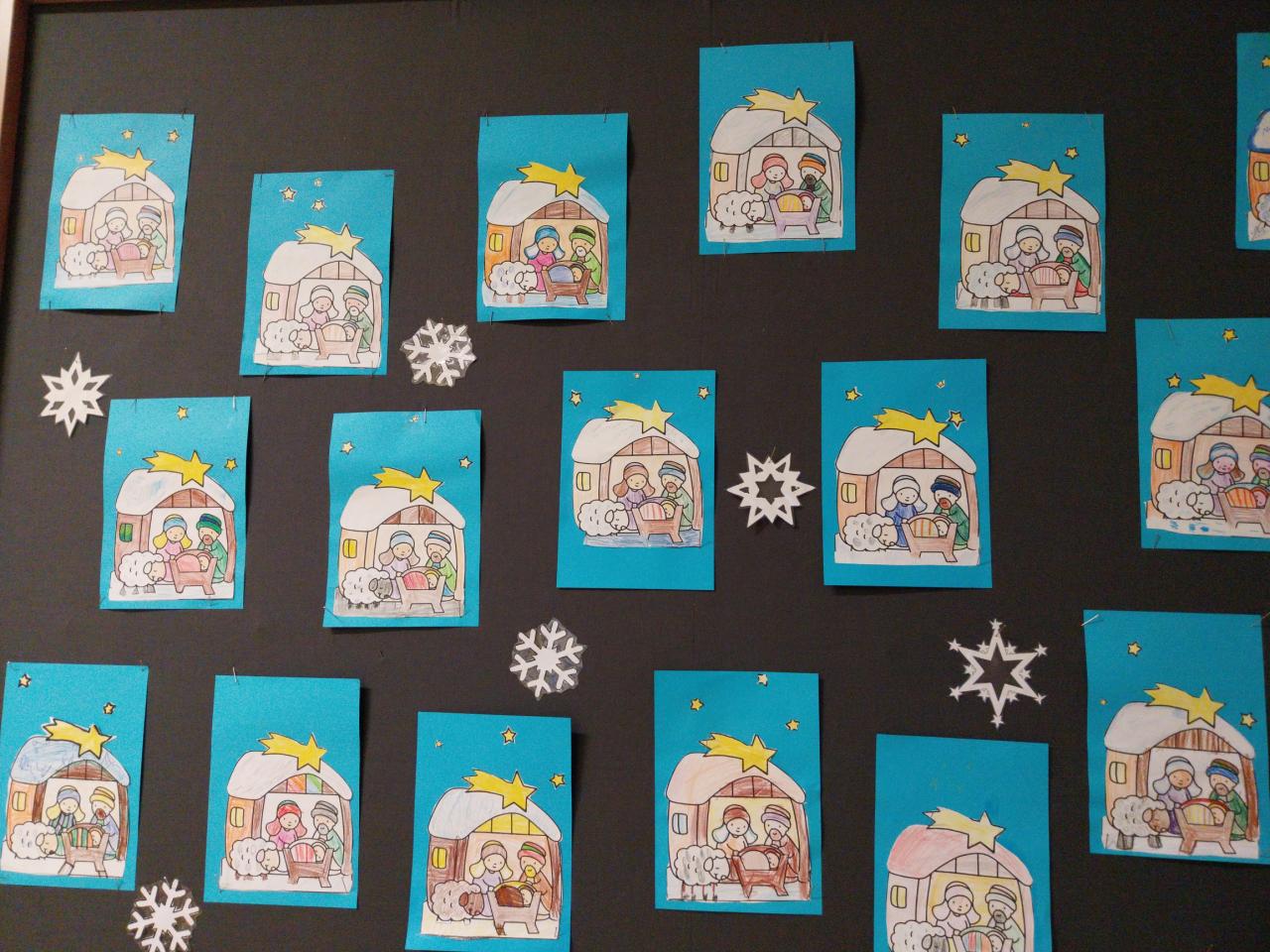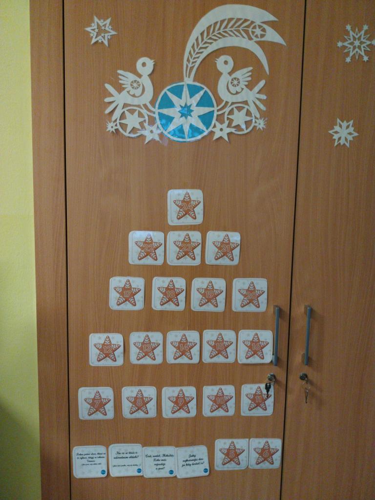 Adventní čas při různých aktivitách rychle ubíhal . Ve třídě vládla voňavá vánoční atmosféra. My jsme vyráběli přáníčka, malovali krásné andílky, vánoční stromečky. Vyrobili jsme si i malý betlém. O blížících se svátcích jsme si každý den povídali u perníčkového adventního kalendáře, zpívali koledy a bylo nám prima.